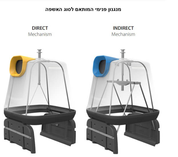 ניתן לבחור בפינוי באמצעות פטריה או וו כפול.
