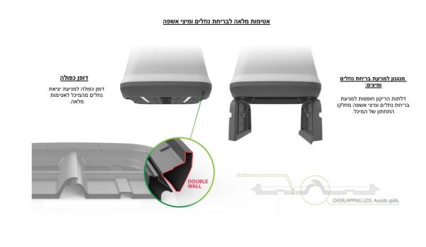 המיכלים מתוכננים בעיצוב מודרני ונקי עם דגש על פרקטיות ונוחות מירבית הן בשימוש והן בפינוי.